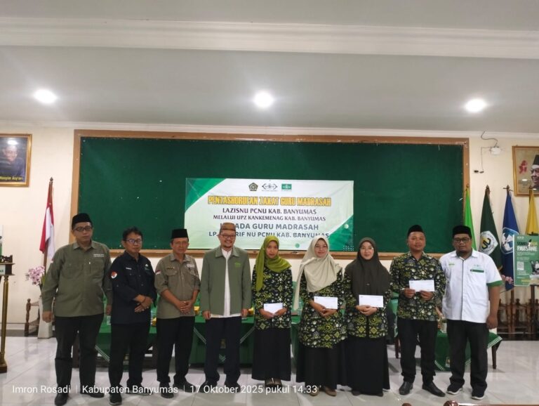 PURWOKERTO lazisnubanyumas.com- LAZISNU PCNU Kabupaten Banyumas bersinergi dengan Kantor Kementerian Agama Kabupaten Banyumas menyalurkan dana zakat sebesar Rp186 juta untuk mendukung dunia pendidikan. Bantuan ini ditujukan bagi guru honorer, tenaga kependidikan, serta siswa kurang mampu di madrasah yang berada di bawah naungan LP Ma’arif NU Kabupaten Banyumas. Ketua LAZISNU PCNU Banyumas, Prof. Dr. H. Suwito,…
